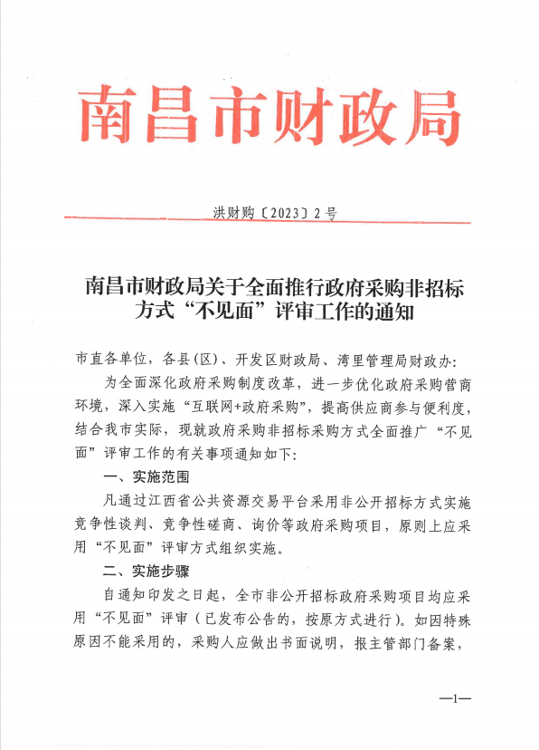 南昌市财政局关于全面推行政府采购非招标方式“不见面”评审工作的通知